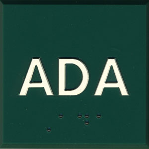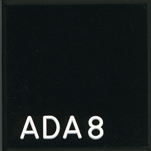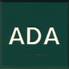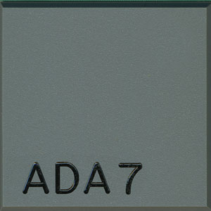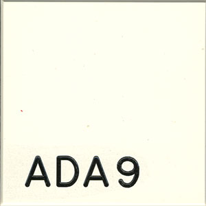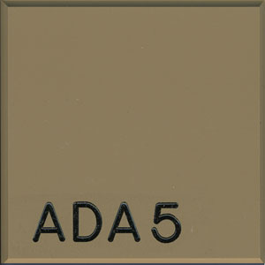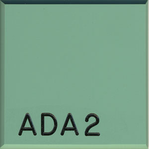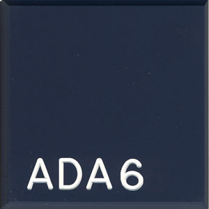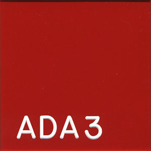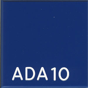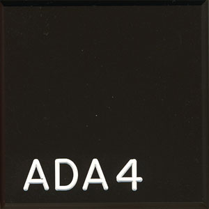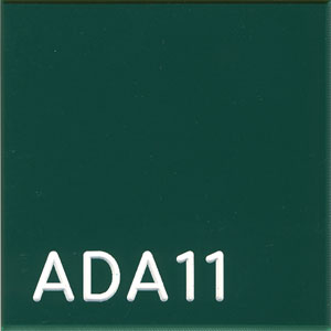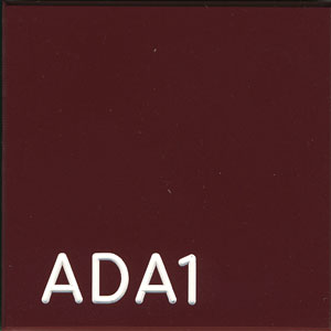 Samples below can be used for tactile ADA-compliant signage. Background color represents field color and sample label represents the color of raised lettering. In all cases, braille lettering is clear.