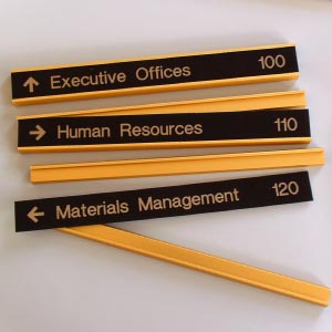 Signs available in a range of finishes to match your decor. | Modular systems are easy to expand and update. |