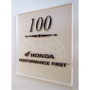 ![]() ![]() ![]() VINYL ON CLEAR, COLOR-BACKED ACRYLIC & FROSTED ACRYLIC WITH VINYL AND ENGRAVING |